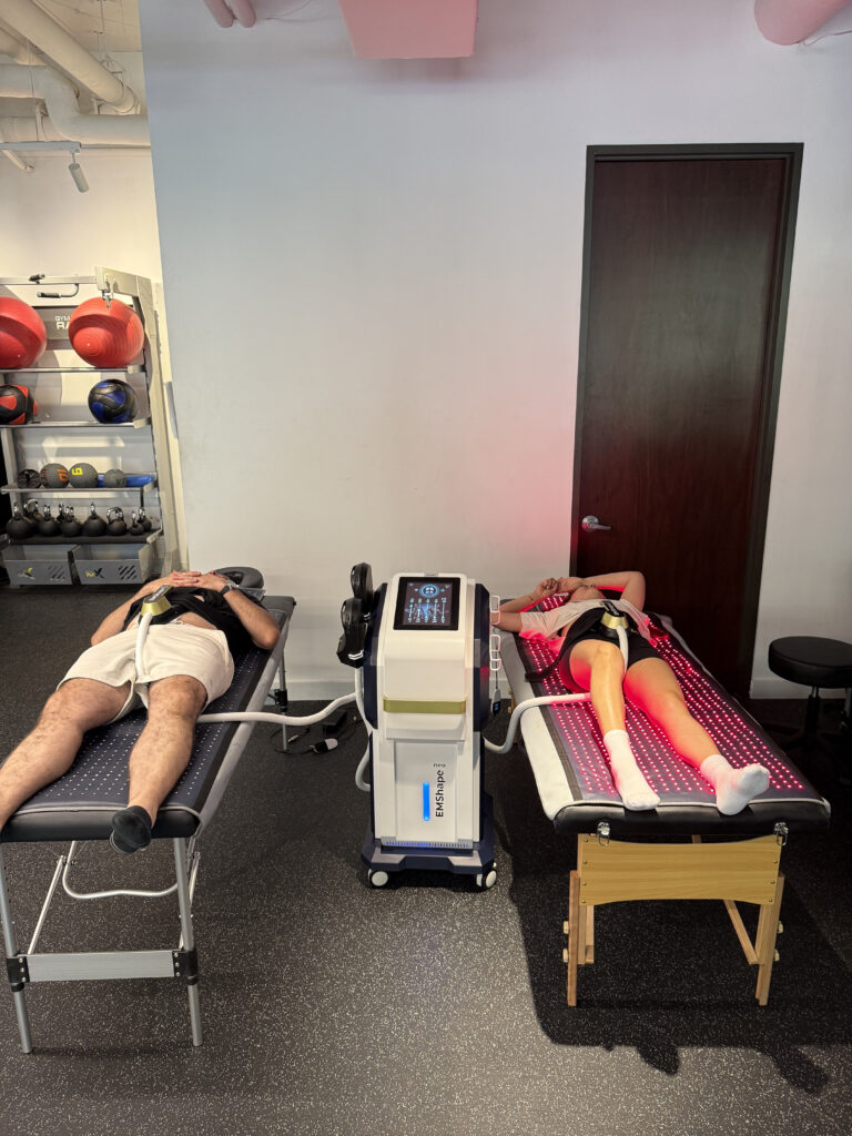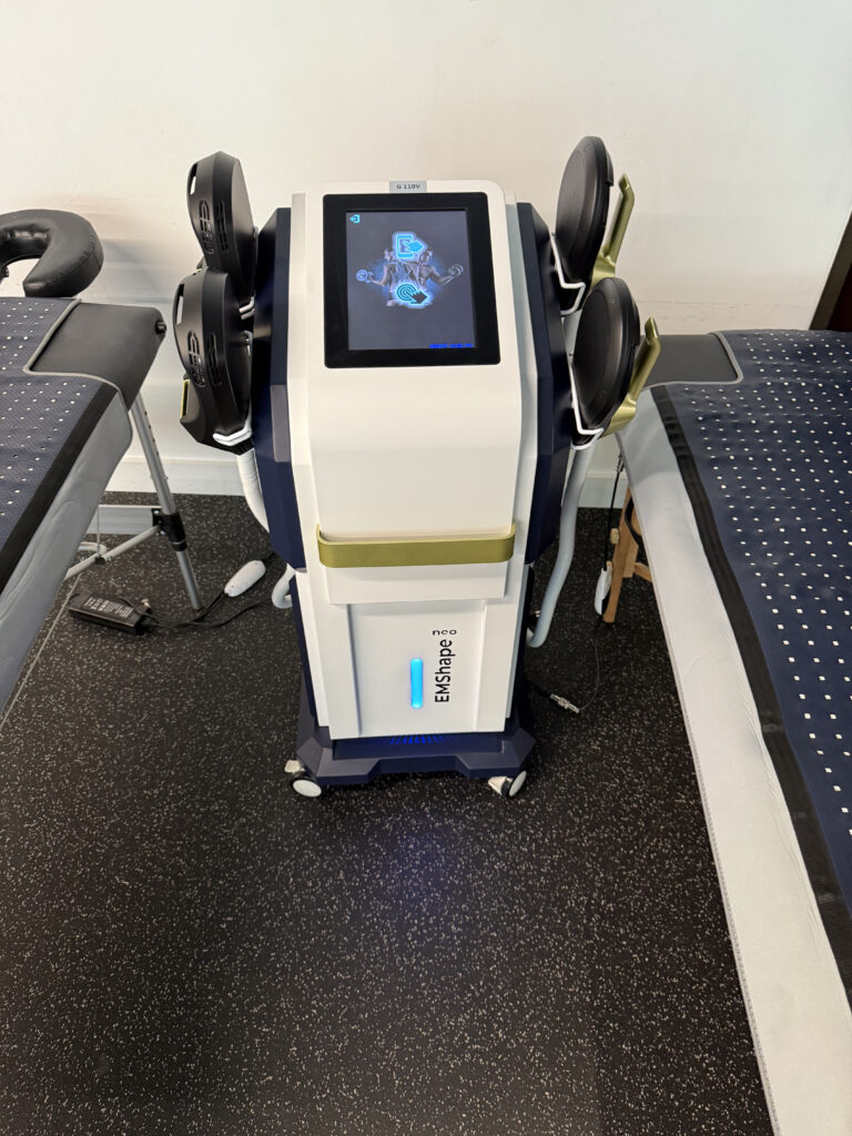 30 minute session using the professional Em-shape body sculpt machine. This machine is used to target areas of weakness and unwanted body-fat. The machine is a powerful body sculpting machine with fast frequency high magnetic energy and synchronized radio frequency that can provide up to 30% fat cell loss over the course of 4 week treatment.